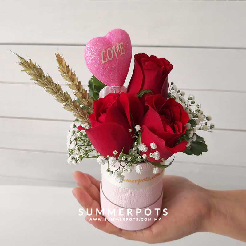 3 Roses (I Love You) in small box with Love Stick.
