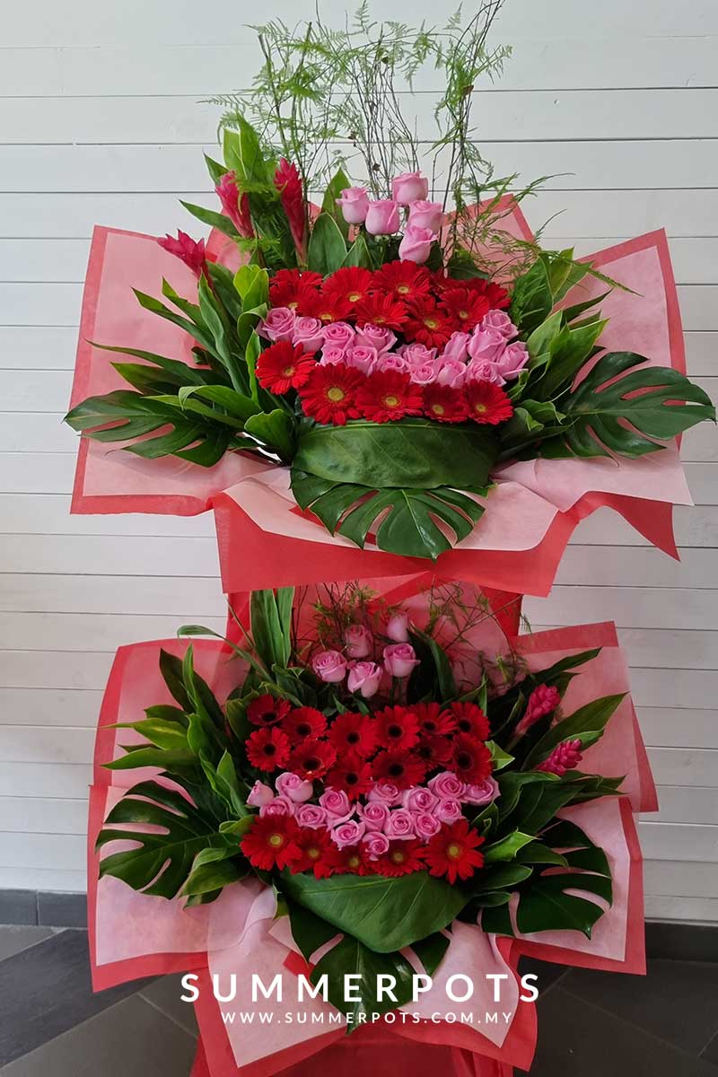 5 Red Ginger, 40 Maria Pink Roses, 30 Red Gerberas