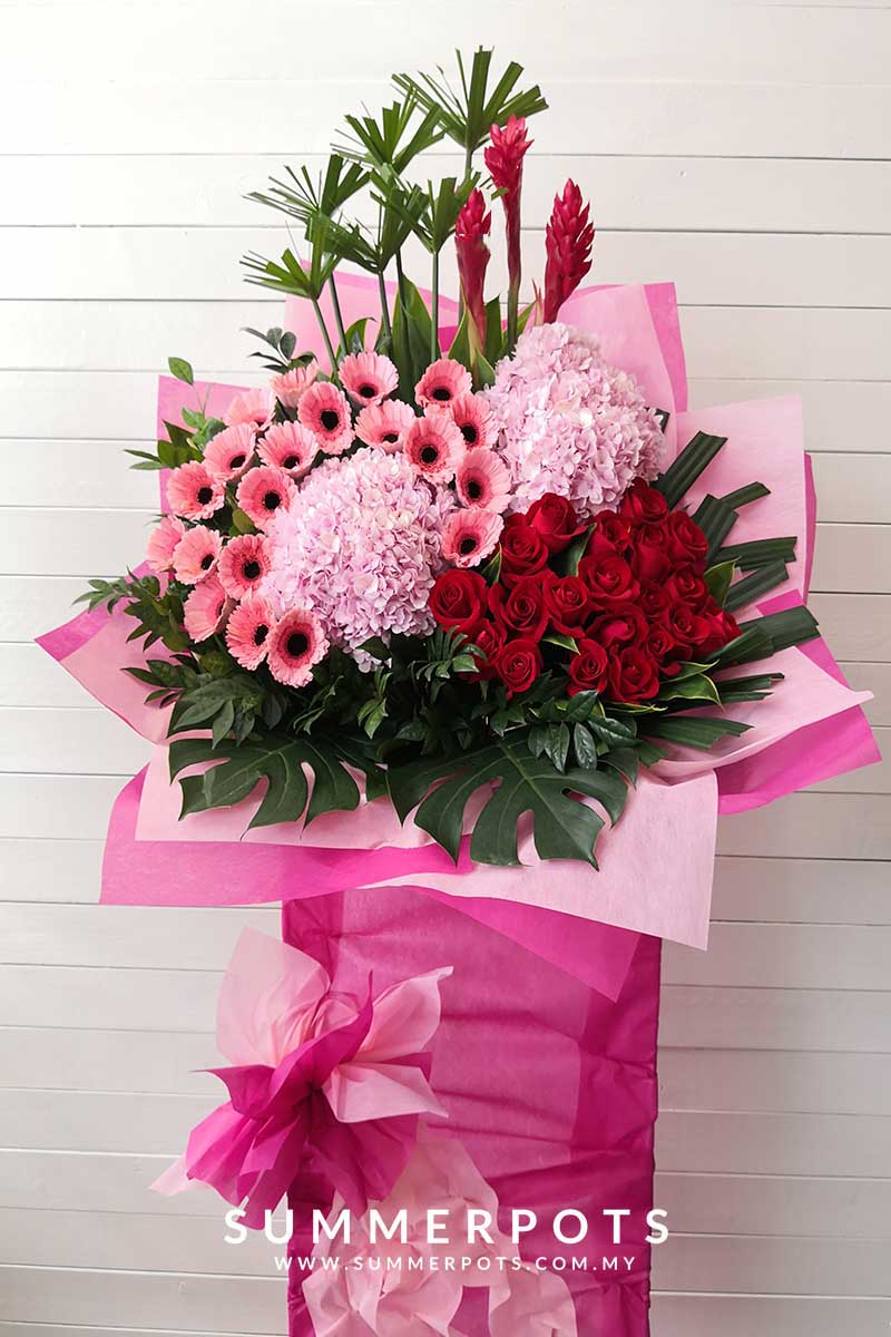 2 Pink Hydrangeas, 3 Red Gingers, 20 Pink Gerberas & 20 Red Roses