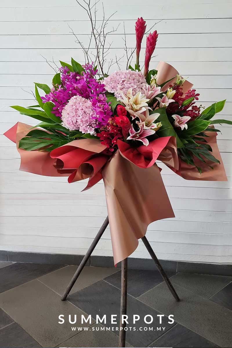 2 Pink Hydrangeas, 5 Pink Lilies, 5 Red Ginger, 10 Pink Orchids, 5 Red Orchids
