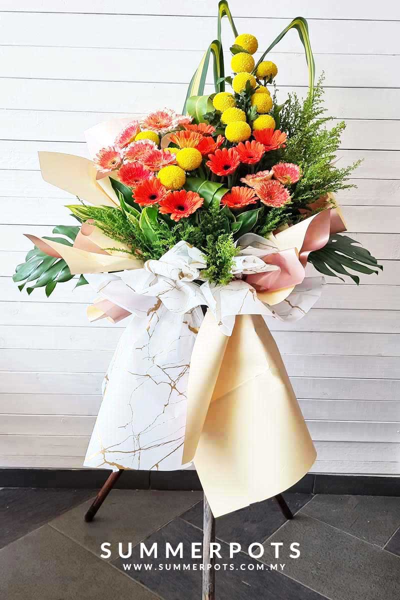 20 Gerberas, 12 Yellow Pingpong & Yellow Peacock.