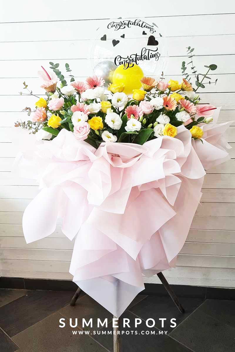 10 Yellow Roses, 5 Pink Roses, 10 Pink Gerberas, 2 Pink Anthurium, White Eustoma & 1 Bubble Balloon