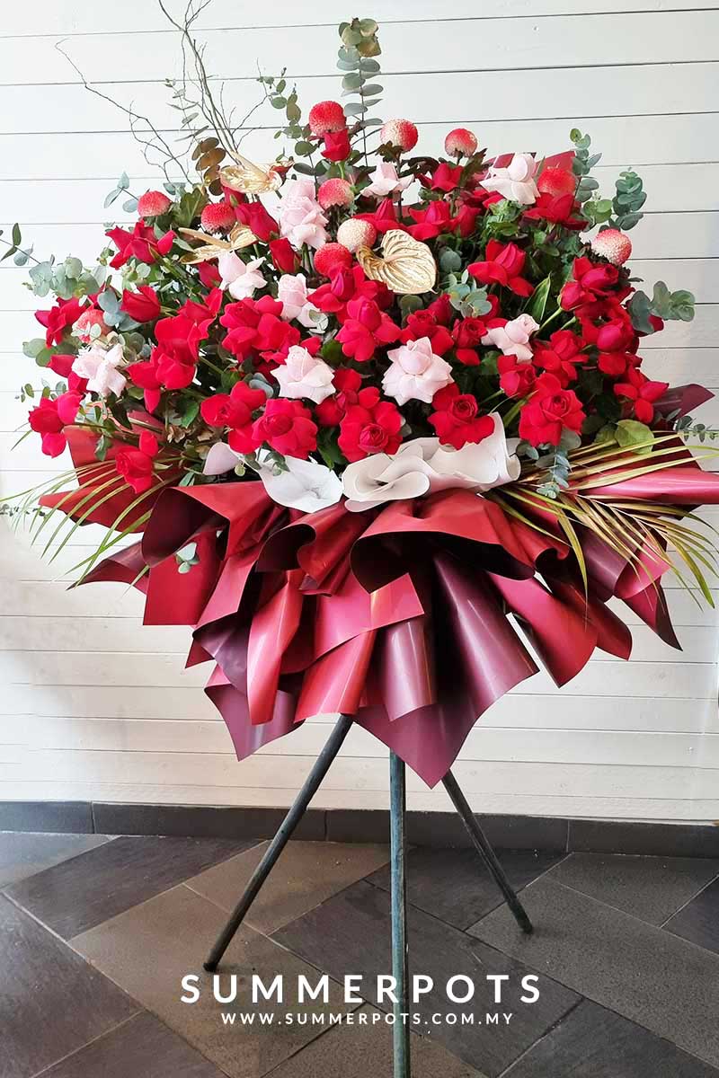 38 Red Roses, 10 Pink Avalanche Pink Roses, 10 Red Pingpong & 3 Gold Anthurium.